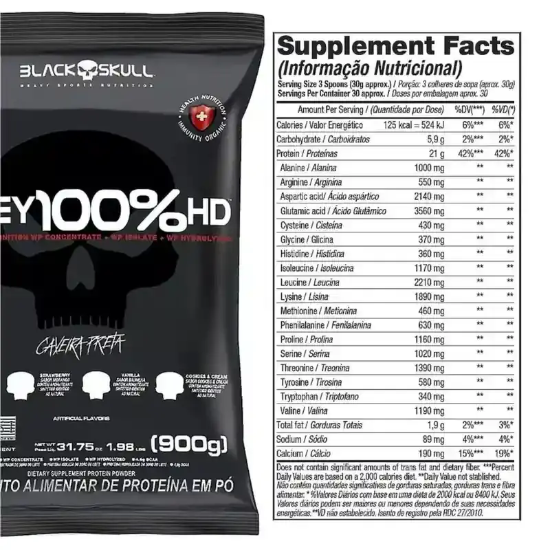 Whey 100% HD Refil 900g - BLACKSKULL | 21g de Proteína